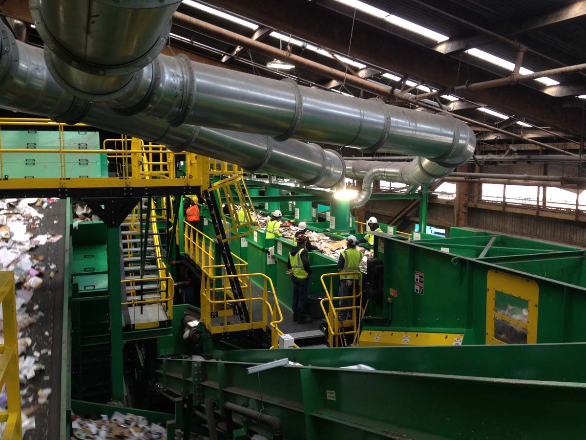 Located on Pier 96, the 200,000-square-foot facility is now capable of sorting about 630 tons per day. The upgrade boosted the line’s capacity by 170 tons per day, a 37 percent increase. The improvements included the installation of multiple pieces of equipment: An advanced drum feeder for inbound material, presort line with 14 sorting stations, three-deck mechanical star screen for OCC separation, two spinning disk screens for fibers, two new optical sorters, a patented rotary air lock pneumatic recovery system and a glass clean-up system.