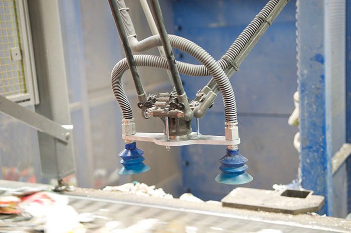At the Dem-Con site, the system will be placed at the beginning of the container line, which is located toward the end of the overall processing network. The robot will be programmed to isolate cartons from the mix of containers, the same setup in place during the pilot in Colorado.