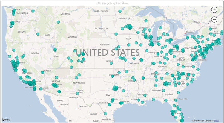 The Recycling Partnership on Oct. 22 the published map detailing more than 350 residential recycling sorting facilities. It provides a geographical picture of which regions are well-served with recycling infrastructure and which areas need the most help.