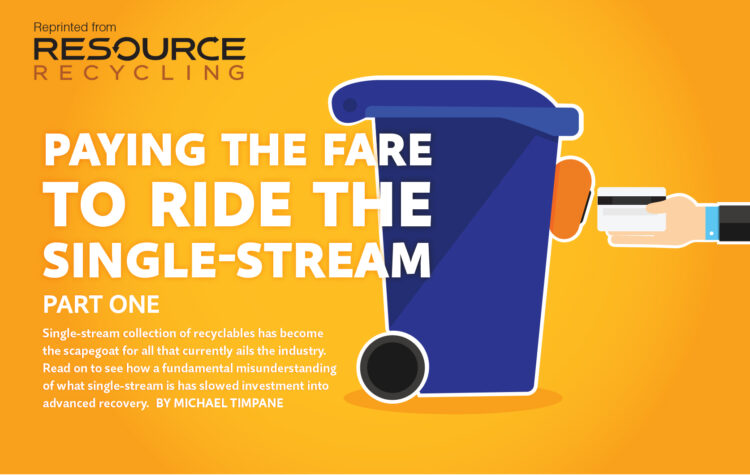 Bashing curbside single-stream recycling collection has been a popular pastime for pundits in recent months. From material interests, such as paper, plastics and metals, to CEOs disappointed in financial performance, to reporters and columnists finding a juicy story – all have commonly quipped for the last three years about the shortcomings of this municipal service. In every part of the U.S., and in almost every large municipal market, the negatives of single-stream have been laid bare: contamination, rising costs, changing waste streams, and problem or marginal materials.