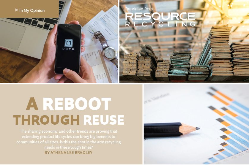 As noted by MaryEllen Etienne in “The Far Reach of Reuse” (a feature in the September 2016 edition of Resource Recycling), the reuse sector is already aligned with the goals of a circular economy. With recycling markets in a slump, communities can benefit by increasing the practice of reuse. In an otherwise slow-growth economy, reuse and sharing businesses often thrive.