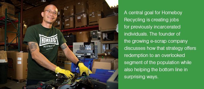 Now known as Homeboy Recycling, the for-profit company last November incorporated as a California Social Purpose Corporation, which gives it flexibility in its pursuit of charitable activities.
