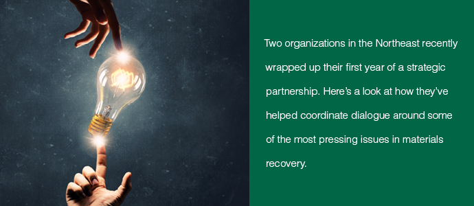 In June 2017, the Northeast Recycling Council (NERC) and the Northeast Waste Management Officials’ Association (NEWMOA) entered into a Joint Strategic Action Plan to strengthen their collaboration and to seek opportunities for materials recovery advancement.