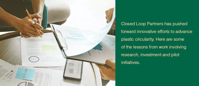 Over the last five years, Closed Loop Partners has researched, invested in and piloted numerous solutions as part of a multi-strategy approach to addressing the global plastics waste crisis, knowing that it’s a very complex puzzle to solve.