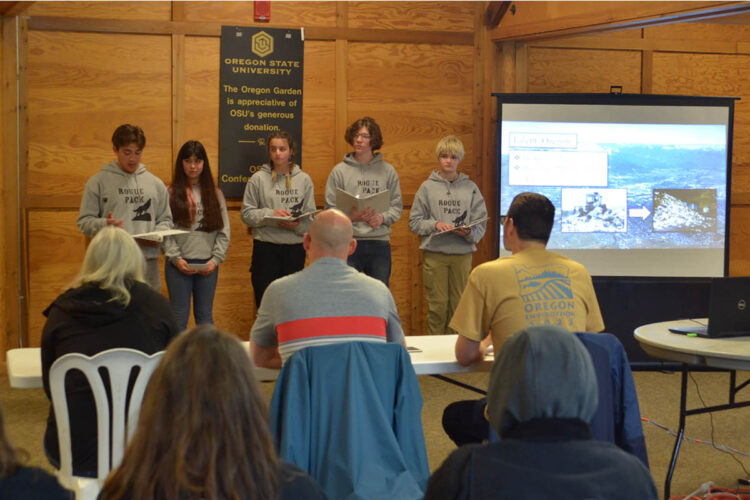 The two squads, the Sustainable Salamanders from Churchill High School in Eugene and The Rogue Pack from Logos Public Charter School in Medford, were presenting mock recommendations to local government electeds on what resources or decisions their communities should ask of the Oregon Department of Environmental Quality (DEQ) as the department implements the act.