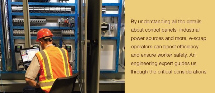 Though far less attention-grabbing than the rumble of a shredder or the shine of gold-plated circuit boards coming off the demanufacturing line, the unassuming box is the heart of a plant’s electrical controls system, which is vital to efficiency and automation. Getting to know what’s inside the electrical panel – and the wider network being steered by those switches and buttons – can help operators maximize the potential of their facilities, make quicker repairs and ensure employee safety.