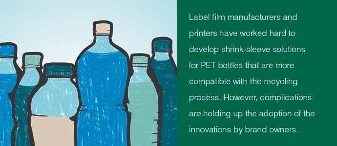 The hope is that such emphasis on recyclability will continue to carry over to shrink-sleeve considerations. And if a few large consumer goods companies do, in fact, adopt the new technologies, others will likely follow.