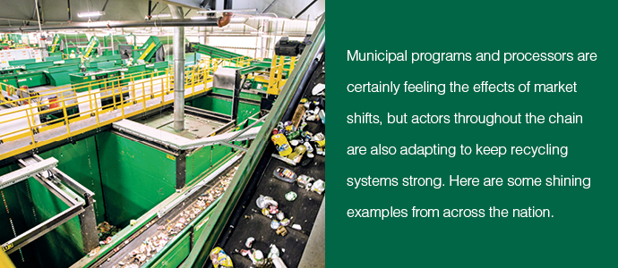 Sometimes working together can be more efficient and fruitful than working alone. And local governments are finding that to be true as they take steps to strengthen their recycling programs amid today’s turbulence.