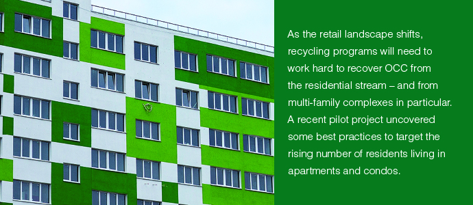 New multi-family housing construction is growing to meet increased demand for housing in and around city centers. That fact is shifting priorities for local recycling programs. Major cities in the U.S. view increasing multi-family recycling as vital to reaching waste goals and improving overall recovery rates. And jurisdictions around the U.S. are also now mandating the recovery of OCC.