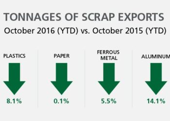 Numbers on exported scrap totals continue to show 2016 lagging 2015 in terms of volume and value. With 3.54 billion...